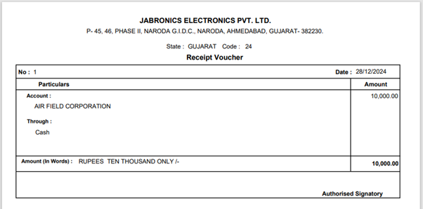 - Print Receipt: Allows the generation and printing of a professional receipt document for the payee, ensuring proper acknowledgment of the transaction.