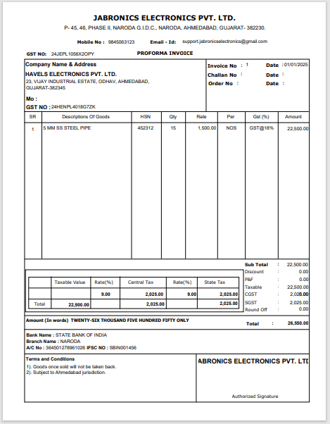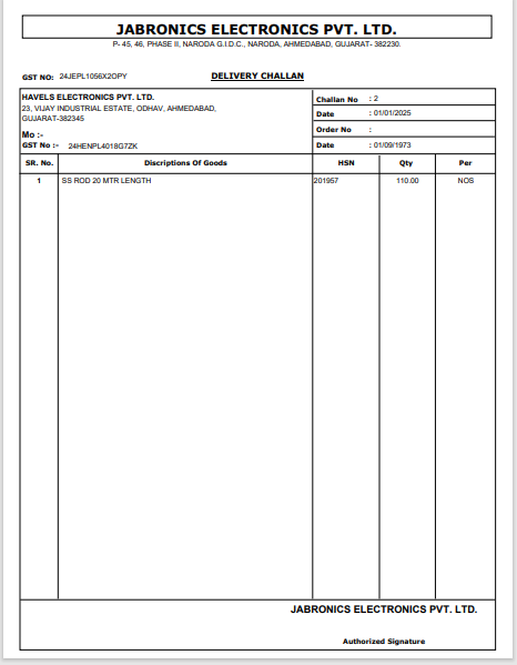- Delivery Challan: For non-sale purposes like samples or returns.